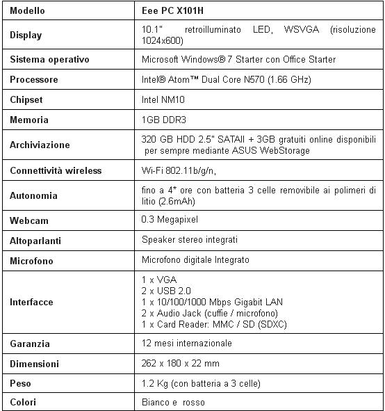 ASUS Eee PC X101 è disponibile sul mercato italiano al prezzo di 249 Euro, IVA inclusa, nei colori bianco e rosso, con una trama tridimensionale che rende la superficie resistente a graffi e impronte.Redazione XtremeHardware