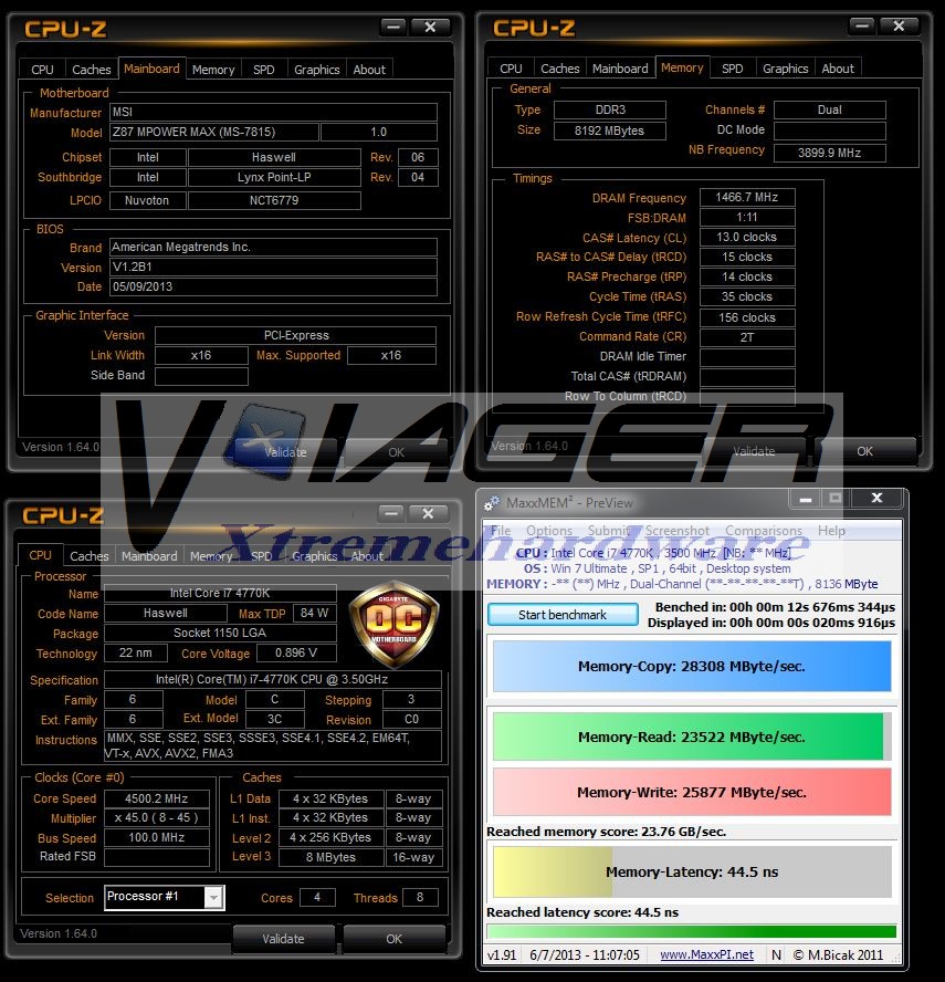La pratica dell’overclock abbraccia sempre più adepti ma richiede un adeguato raffreddamento nonché una buona dose di fortuna nel accaparrarsi i componenti “fortunati” ed una buona dose di sagacia, dato che tale pratica invalida la garanzia dei componenti stessi, ed è quest’ultimo aspetto oltre che quello economico l’unico freno ad intraprendere tale disciplina. Haswell si è dimostrata particolarmente ostica nell'overclock estremo, per via del grande calore sviluppato, per via della purtroppo inevitabile pasta termica di scarsa qualità, e in fin dei conti anche per una minore propensione a salire in frequenza, con un'altra variabilità tra sample e sample. Gli stessi problemi se vogliamo si riscontrano nell'overclock giornaliero, in cui persino i sistemi a liquido faticano a raffreddare i bollenti spiriti di Haswell overclockato. Dalla sua Haswell ha però un buon margine prestazionale ed a frequenze inferiori è in grado di dare quel quid in più rispetto ai 3770K anche a frequenze superiori. A dar man forte all'overclocker c'è senz'altro l'ottimo memory controller che permette di spingere in modo consistente i kit DDR3 migliori sulla piazza, putroppo aumentati di prezzo negli ultimi mesi.