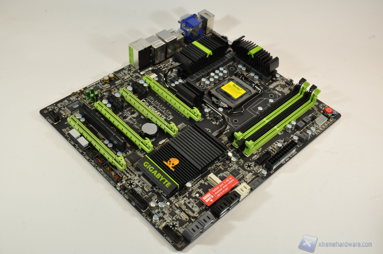 Il layout è ben ordinato. Lo spazio presente tra i 4 slot di espansione è sufficiente per installare schede grafiche equipaggiate con voluminosi dissipatori dual slot, come la serie GV-N680xx oppure GV-N690D5 di casa GIGABYTE. Sarà quindi possibile realizzare un sistema Quad Sli/CrossFireX. Del resto il Form Factor della G1.Sniper è E-ATX ossia 30,5 x 26,4. Consigliamo particolare attenzione alla compatibilità ed allo spazio del case dove sarà inserita.
