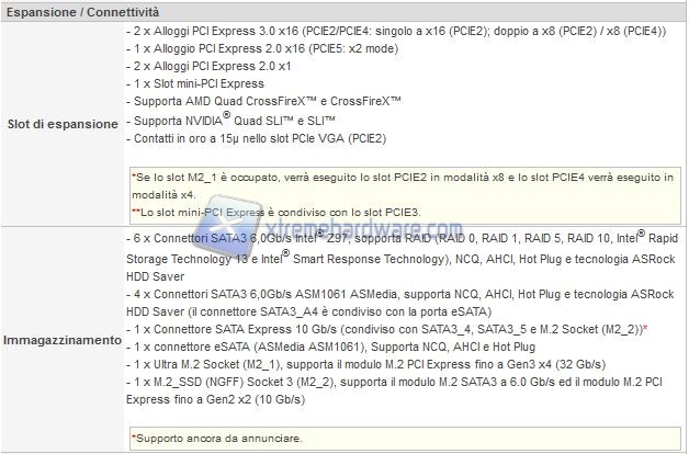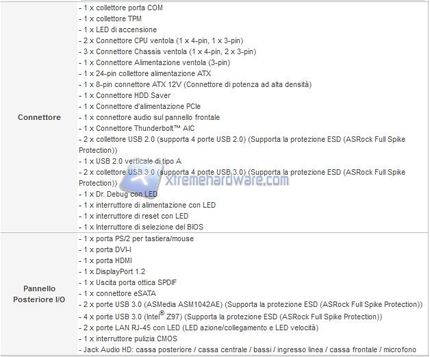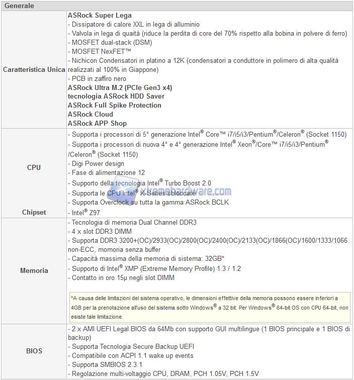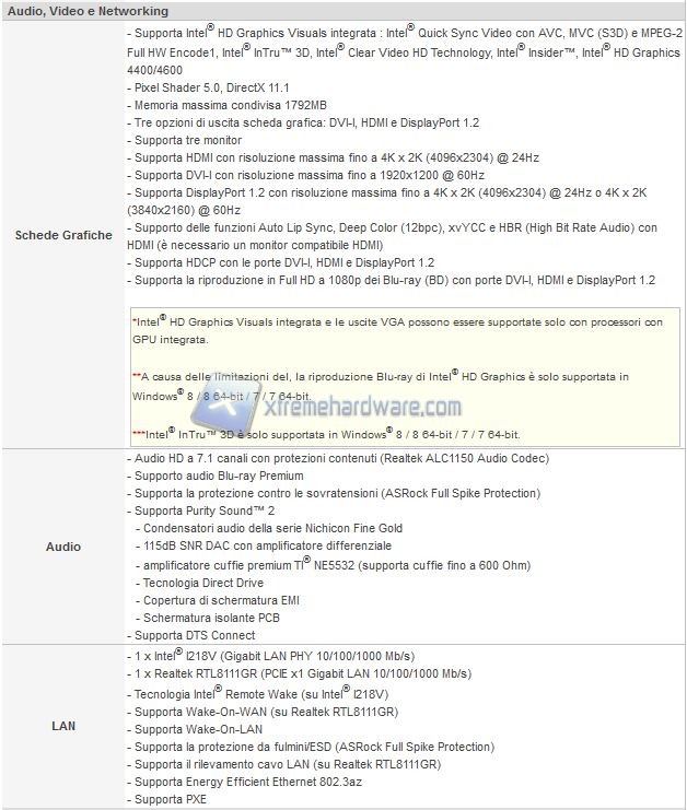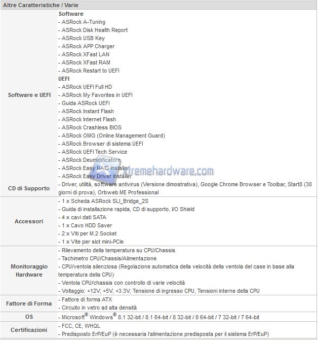 Riportiamo integralmente per completezza d’informazione gli screen relativi alle specifiche di prodotto, disponibili anche sul sito del costruttore.